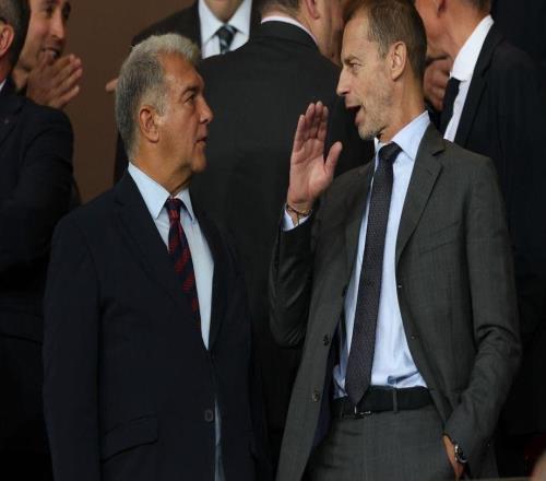 2025-10-02歐冠巴塞羅那對陣巴黎聖日耳曼的比賽開始前,現場捕捉到的一幕格外引人關注。巴薩主席拉波爾塔與歐足聯主席切...