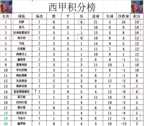 積分榜方麵,本輪全部戰罷,皇馬慘敗終止6連勝後,新賽季沒有全勝球隊,巴薩1分優勢反超皇馬登頂,皇馬領先比利亞雷亞爾2分跌到第2。巴薩之外隻有升班馬埃爾切還保持不敗,他們差皇馬5分排在第4。奧維耶多今天逆轉絕殺瓦倫西亞止住3連敗頹勢,反超皇家社會,塞爾塔等隊1分逃出降級區。