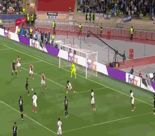 第54分鍾,摩納哥戰術角球配合送出傳中,後點巴洛貢搶點射門打偏。
