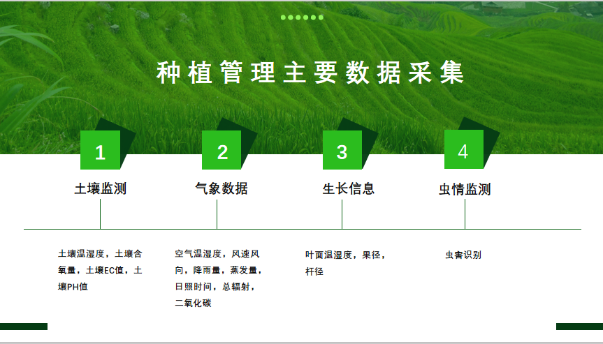 該平台根據24節氣、氣象條件、土壤條件,提供科學種植指導,為農民包產增收;同時集農機農田劃分、農植物選擇、人員管理、農機軌跡設定於一體,使種植更加科學化、合理化,省時省力。